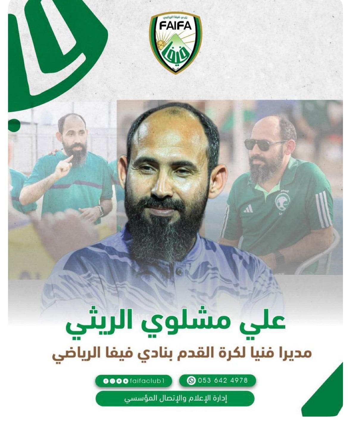 أعلن نادي فيفا الرياضي برئاسة الأستاذ سليمان بن علي الفيفي عن تعاقده مع المدير الفني علي مشلوي الريثي لقيادة فريق كرة القدم خلال منافسات الموسم الرياضي 2025 – 2026.