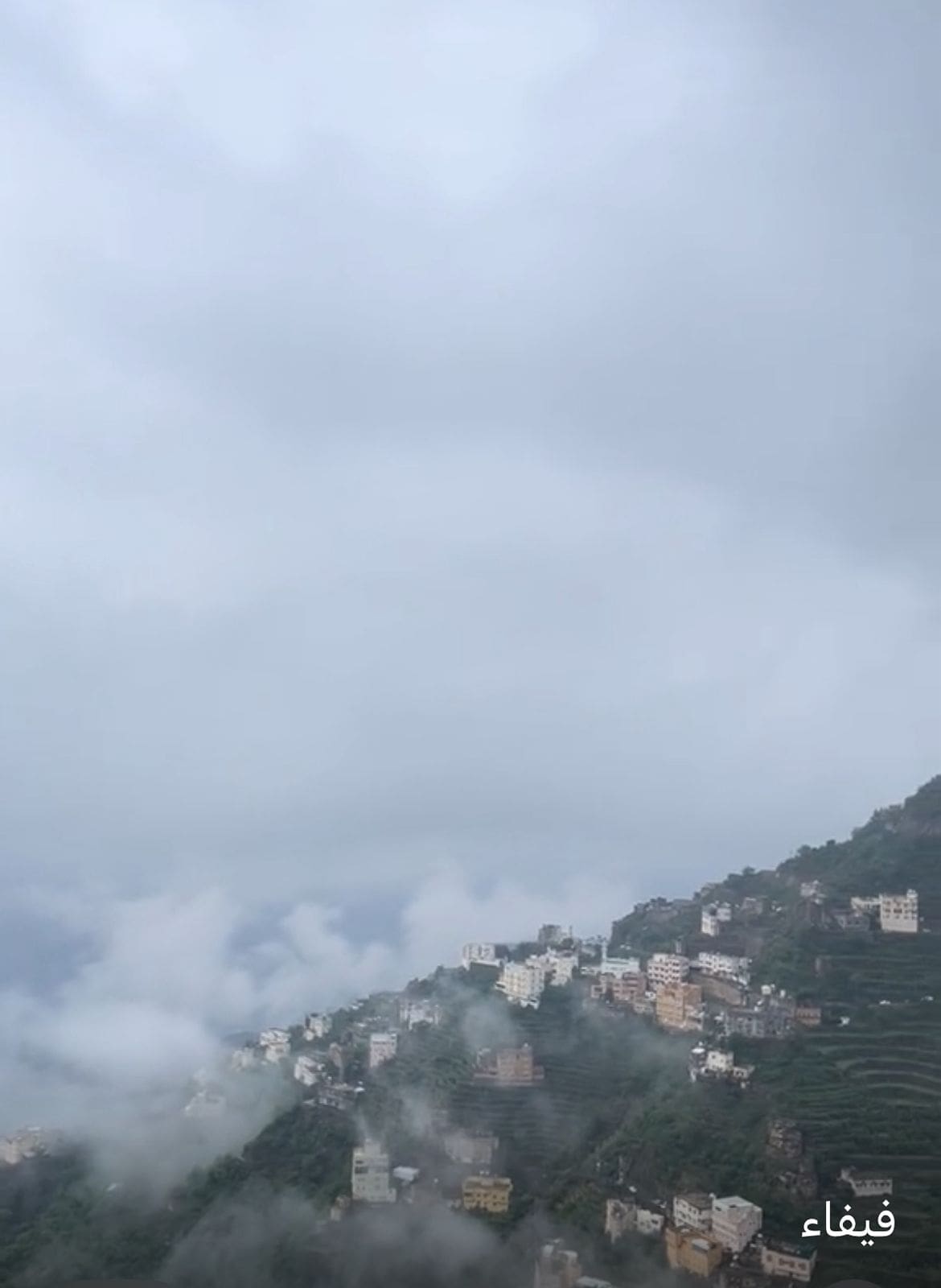 المنظر الذي التُقط من ملتقى مناظر فيفاء أظهر البيوت المتناثرة على مدرجات الجبال الخضراء، وقد تزيّنت بحلّةٍ فاتنة من الضباب المتساقط، في مشهد يحاكي الأساطير ويجعل من فيفاء مقصدًا لعشاق الطبيعة الفريدة والمغامرات السياحية.