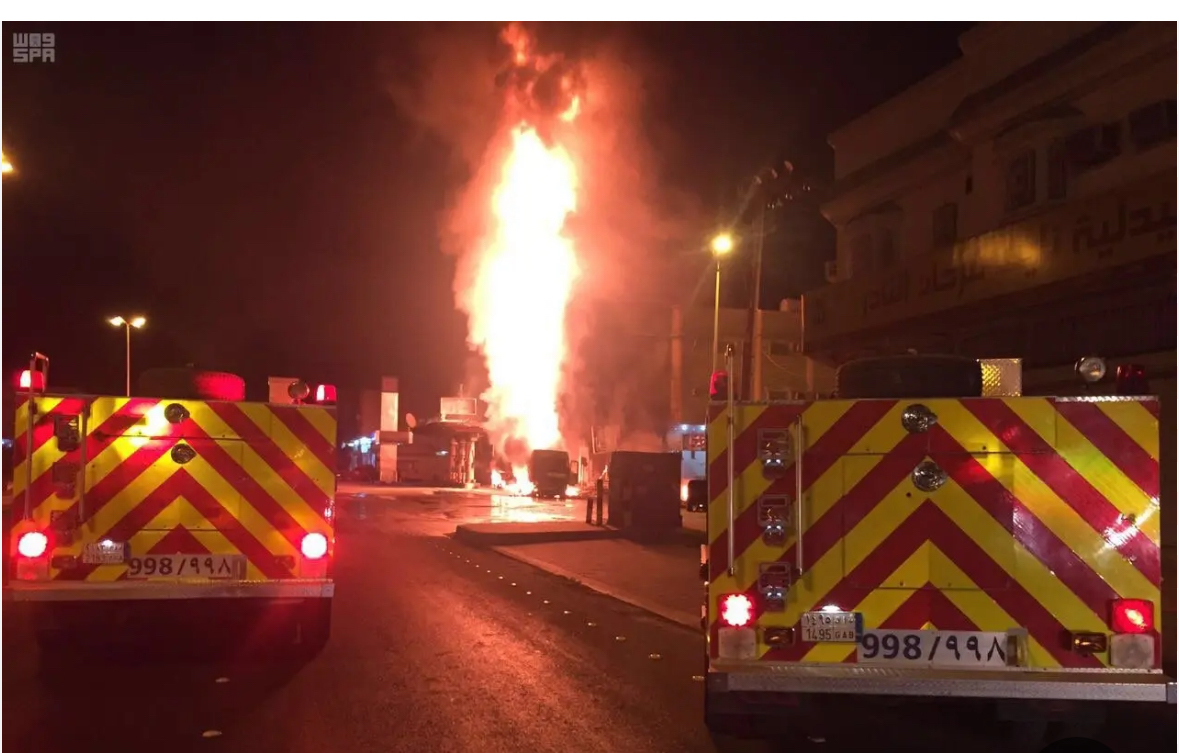 الدفاع المدني يسيطر على حريق في محل تجاري بمحطة وقود في نجران دون إصابات