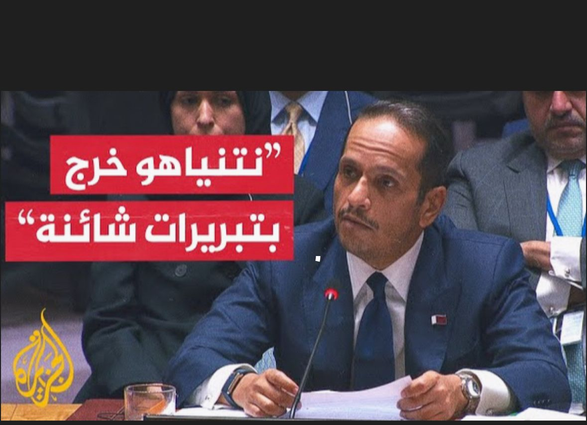 في كلمة حازمة ألقاها أمام مجلس الأمن الدولي، انتقد رئيس مجلس الوزراء ووزير الخارجية القطري الشيخ محمد بن عبد الرحمن آل ثاني، الخطاب الذي قدّمه رئيس الوزراء الإسرائيلي بنيامين نتنياهو، واصفًا إيّاه بأنه “مجرد تبريرات شائنة لا تمت للواقع بصلة”.