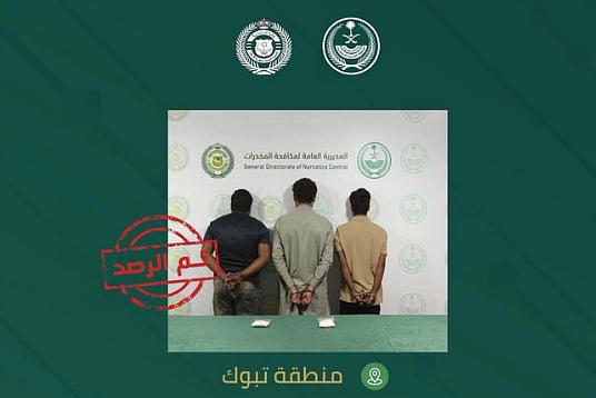أعلنت المديرية العامة لمكافحة المخدرات القبض على مقيمين من الجنسية البنجلاديشية ومقيم من الجنسية الباكستانية بمنطقة تبوك لترويجهم مادة الميثامفيتامين المخدر (الشبو).