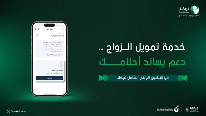 أوضح بنك التنمية الاجتماعية أن حلم بناء عش الزوجية أصبح سهلاً وميسراً على المواطنين السعوديين ، وذلك من خلال تقديم طلب تمويل الزواج بإجراءات بسيطة، لبداية حياتك عبر التطبيق الوطني الشامل توكلنا ، وذلك بهدف تبسيط الإجراءات وتقديم الدعم المالي اللازم لتمكين الشباب والشابات من إتمام مشاريع زواجهم بسهولة ويسر، بعيداً عن التعقيدات المصرفية التقليدية.