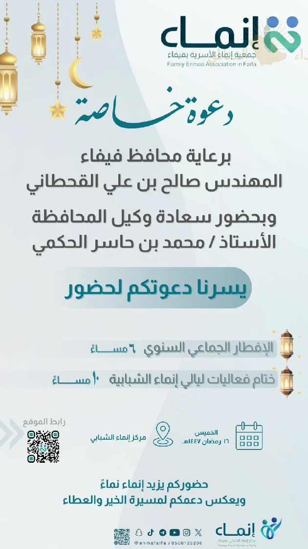 فيفاء : أصداء المناطق أقامت جمعية إنماء الأسرية بمحافظة فيفاء إفطارها الرمضاني السنوي، من خلال…